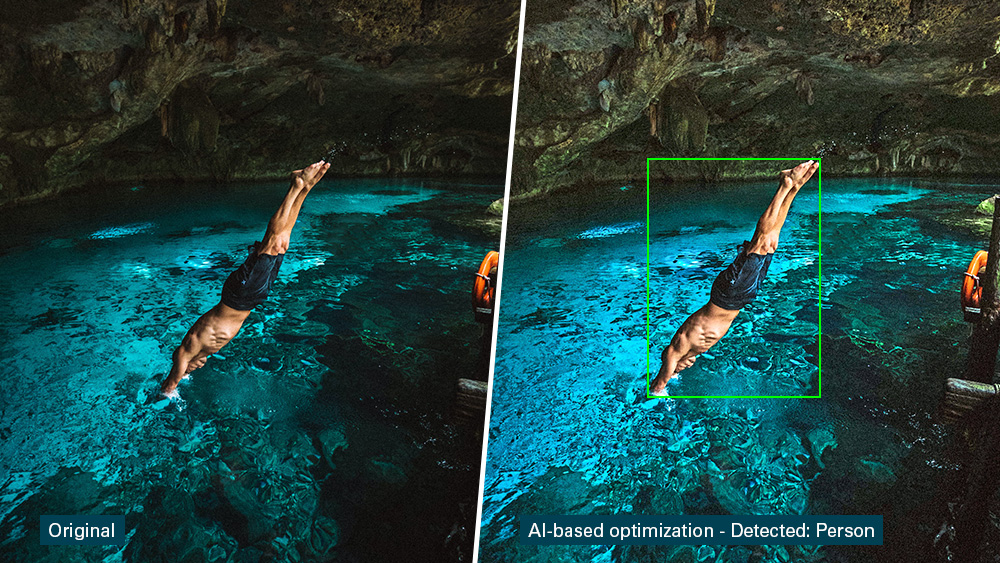 El procesamiento de imágenes con IA permite la identificación de diferentes clases de objetos y, con base en ello, una optimización individual de las imágenes. El software de procesamiento de imágenes con IA reconoce tanto personas y rostros, como si la toma fue realizada en exteriores o interiores. Las imágenes también pueden recortarse automáticamente a formatos predefinidos, manteniendo siempre el objeto dominante enfocado.